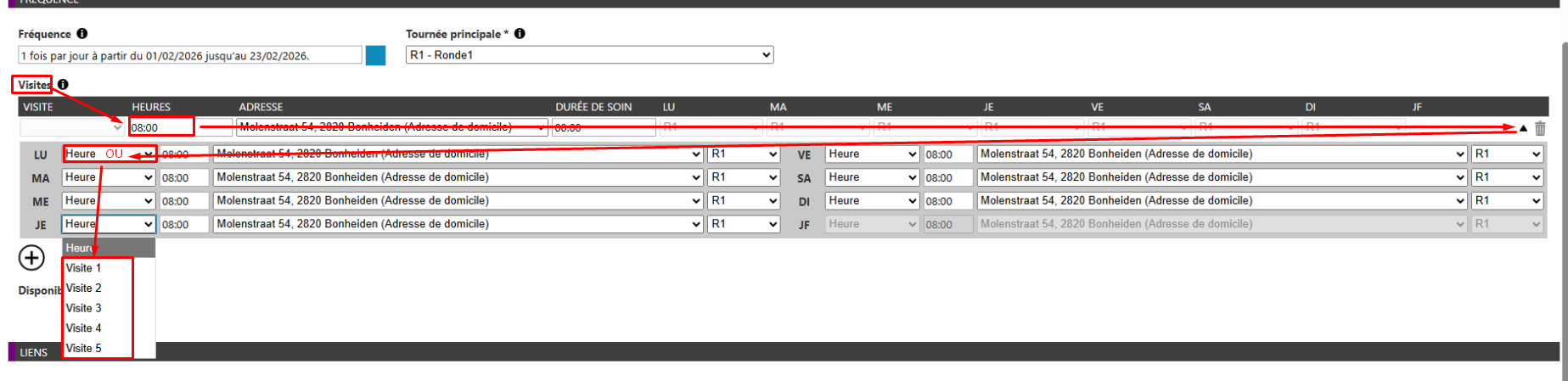 si la première visite de la journée existe déjà pour les jours planifiés, le soin y sera automatiquement ajouté