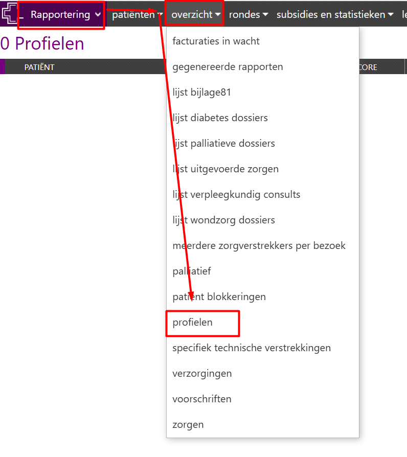 Rapportering → Overzicht → Profielen