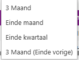Daarna kunt u kiezen uit vier verlengingsopties: 3 maanden, einde maand, einde kwartaal of 3 maanden (einde vorige).