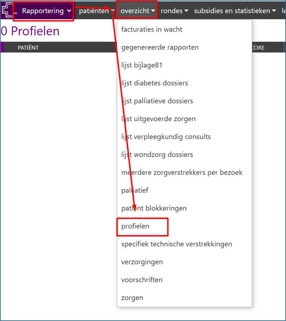 In het scherm Rapportering > Overzicht > Profielen worden alle aanwezige Katzschalen uit de applicatie weergegeven.
