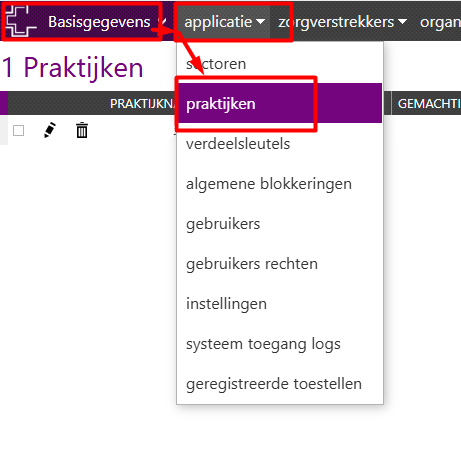 Dit doet men via basisgegevens -> applicatie -> praktijken.