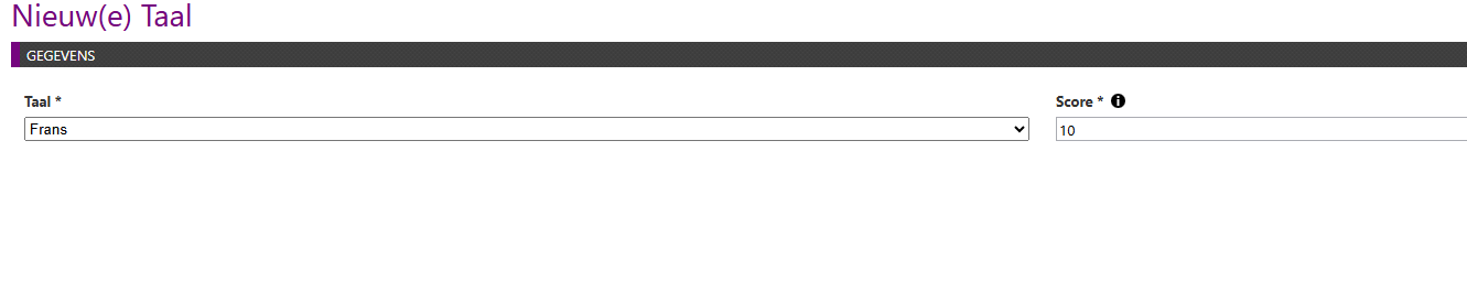 U kan de taal kiezen frans en een score zetten dit zijn 2 verplichte velden.